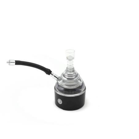 Fill a small glat (shot glass) with 1 cm of Genius Bubble Solution. Ignite the wet sawdust by pressing the button for a few seconds, making sure it is lightly lit. Press the power button again. Do this already on the glass or cup where you want to deposit the bubble and get on the device at the same time the bubble is growing. It is important that the smoke is not too hot, because otherwise it will weaken the bubble and make it less stable.