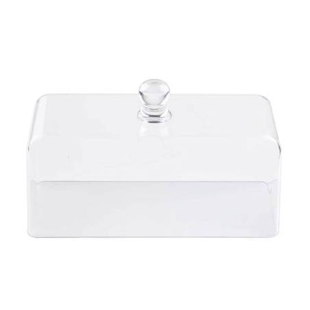 Esta cúpula rectangular con esquinas redondeadas es adecuada para cubrir alimentos como bollería y aperitivos en buffets y restaurantes en general.